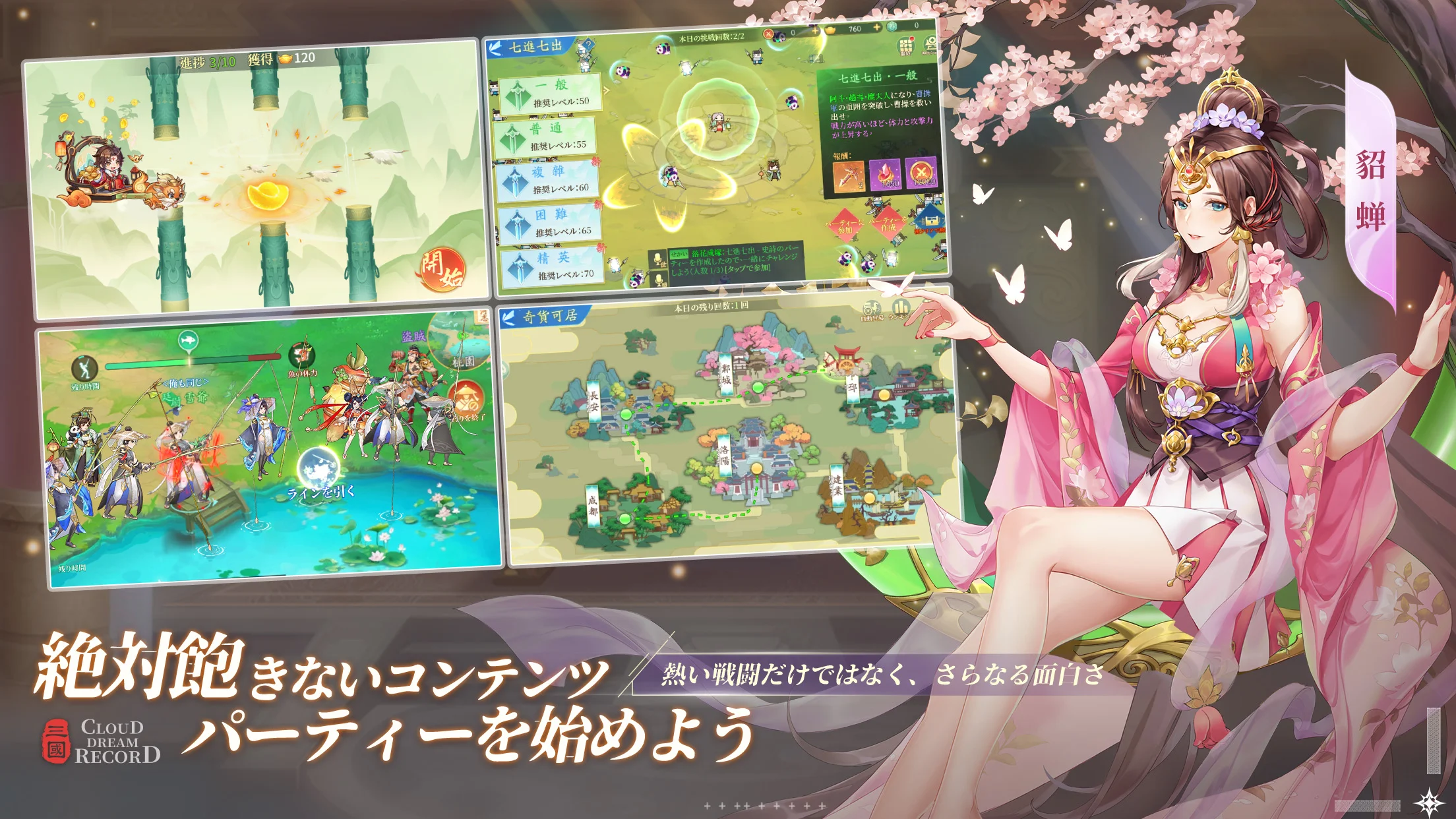 バ一ス卜三国~美人の計は、三国志の重厚な世界観に「美人育成」という要素を掛け合わせたユニークな放置系RPGです。オートバトルと放置報酬による手軽さがありながら、編成や育成の奥深さも備えているので、ライトユーザーから戦略好きまで幅広く楽しめます。