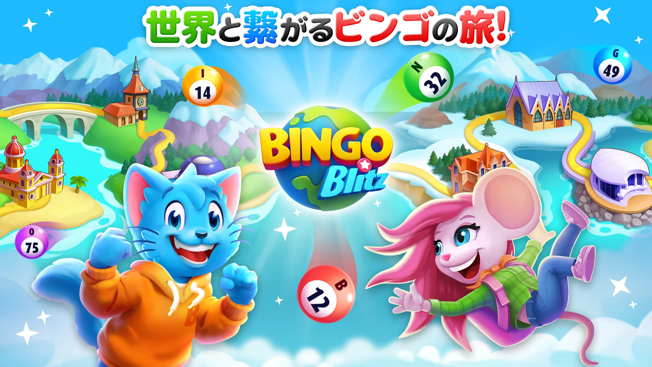 BINGO BLITZは、ビンゴを中心としたカジュアルゲームでありながら、世界各地を舞台にしたステージ制が特徴です。プレイヤーはビンゴカードを使ってゲームを進めながら、都市や国を巡る「旅」のような体験ができます。