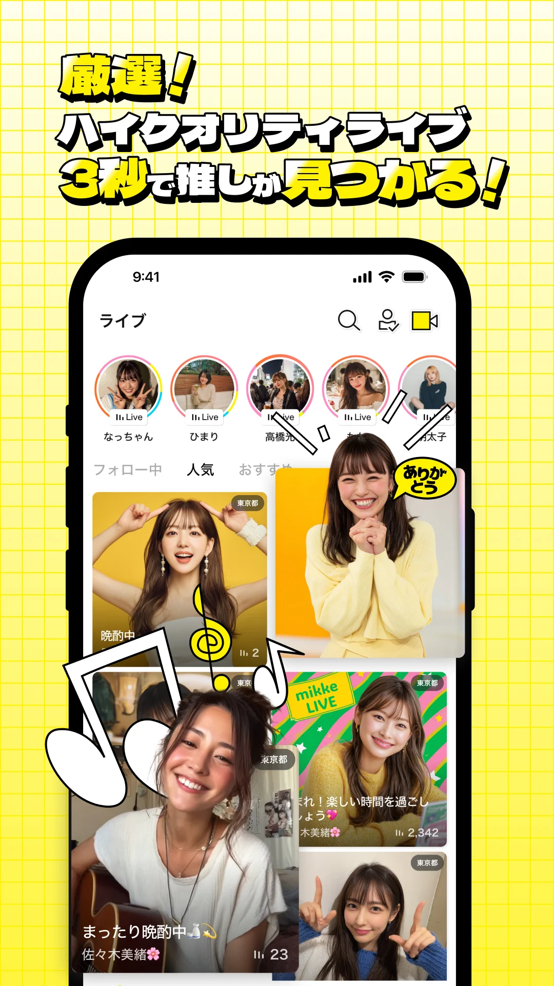 mikke LIVE(ミッケライブ)は、配信者との距離が近く、参加型のライブ体験を重視したアプリとして、多くのユーザーに支持されています。